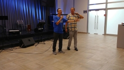 Во время вкусного и обильного угощения гостей развлекал музыкальный ансамбль"Иерусалимский Кейтлин Банд" ( руководитель Константин Кейтлин)., который репатриировался в Израиль из Беларуссии 19 лет назад. Со своей будущей женой Ольгой он познакомился во время учебы в музыкальной академии. За это время у них родилось 5 детей, трое из которых Максим (10 лет), Лев (9) и Элизабет (8) вместе с родителями активно участвовали в концерте. Среди музыкальных инструментов, использованных "Кейтлин Банд", были скрипка, саксофон, флейта, труба, кларнет и бубны, которыми музыканты виртуозно владели и обменивались ими во время исполнения различных мелодий (еврейских, русских. румынских и других народов). Этот музыкальный ансамбль на днях вернулся из г.Витебска (Белоруссия) где успешно представлял Израиль на международном фестивале "Славянский Базар".