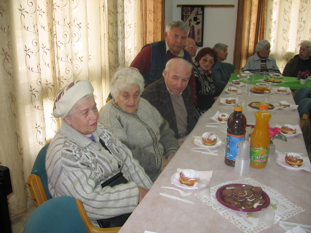 | На праздник приглашены спонсоры общества Даниэль, Тимек Колман и солдаты ЦАХАЛ | Члены общества бывших узников гетто г.Кацрина и гости, пришедшие на празднование Хануки. | ||||||